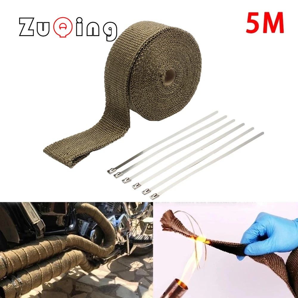 5cm*5M Exhaust Heat Wrap Thermal Tape Fiberglass Heat Wrap Manifold Insulation Roll Resistant with Stainless Ties