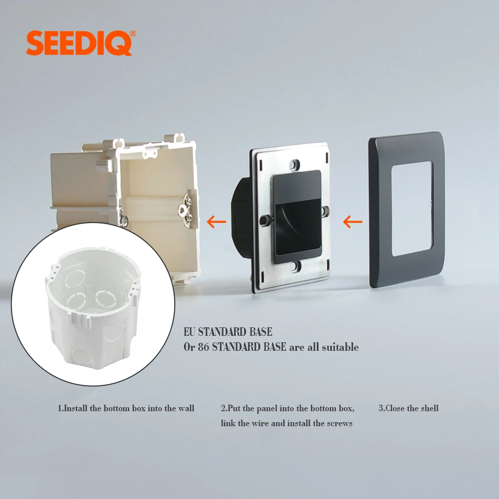 1. Install the bottom box into the wall in advance. (This product is suitable for 86 or European standard bottom box)